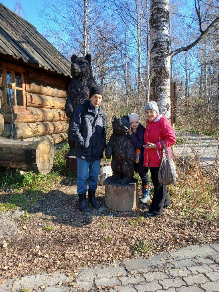 Пенсионеры с внуками совместно с библиотекой посетили эко-центр «Кузнецкий Алатау», покормили животных, посмотрели убранство русской избы, шорский охотничий домик.