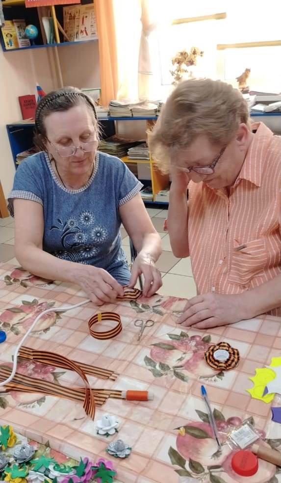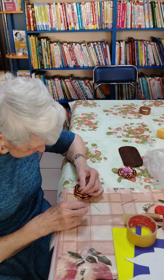 Мастер-класс «Брошь – георгиевская лента с цветком» к 80-летию Великой Победы в рамках занятия кружка «Сами своими руками» состоялся в библиотеке «Притомская» 8 апреля.