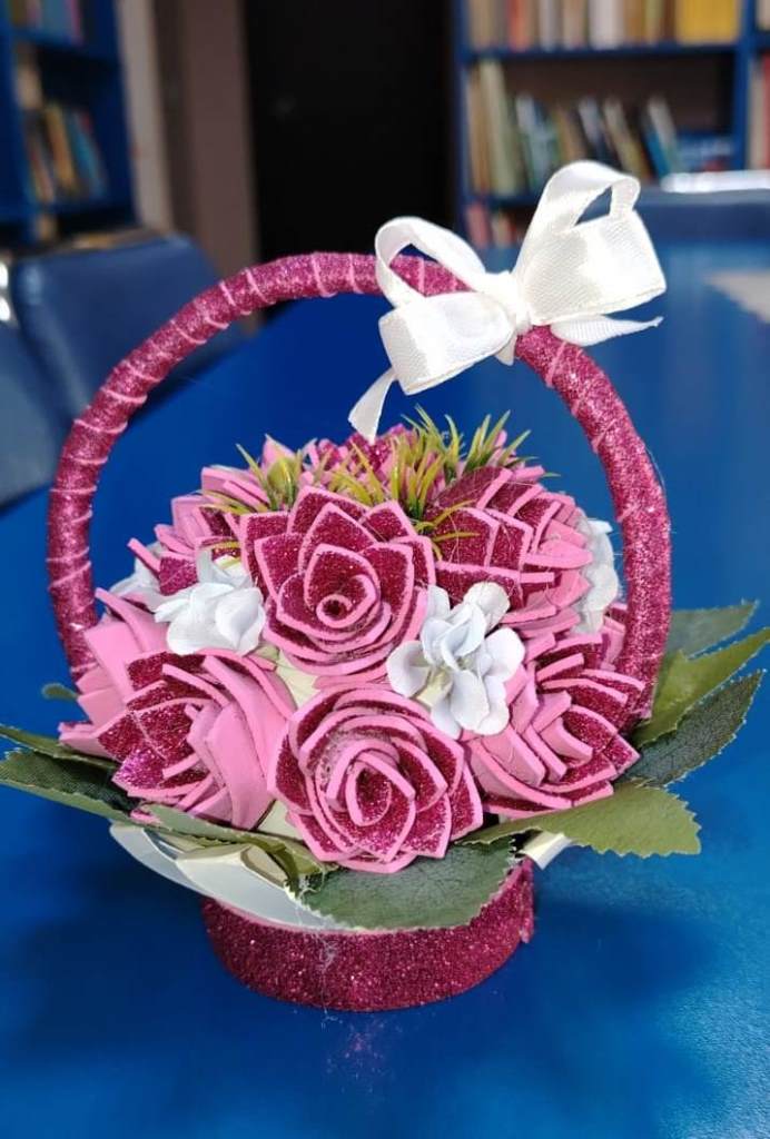 Для изготовления корзиночки нам понадобились: глитерный фоамиран, бумажный стакан, ножницы, горячий пистолет и наша фантазия!