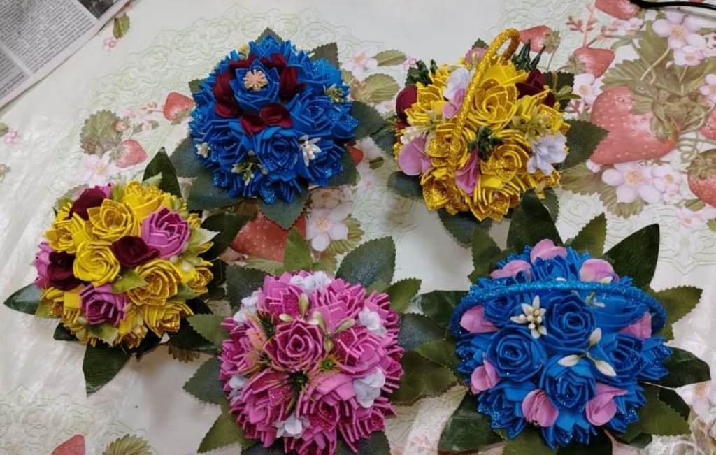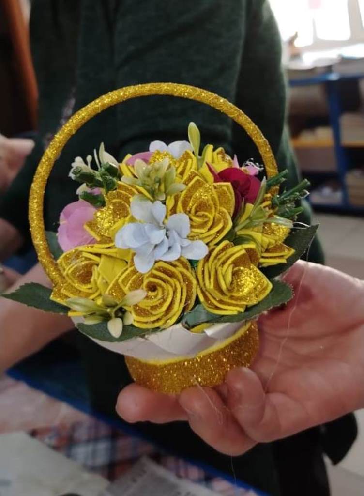 На занятии кружка присутствующие собрали своими руками подарочную корзиночку из готовых частей