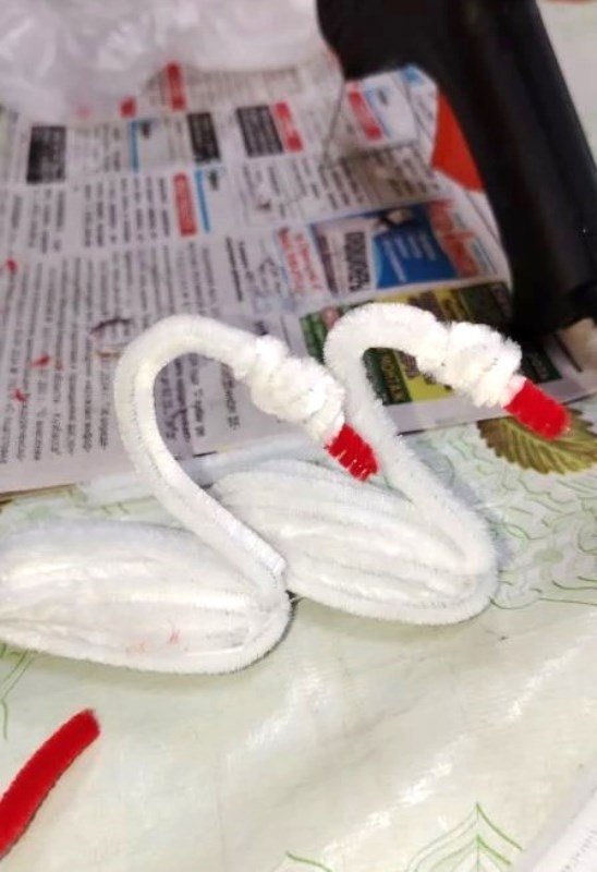 Для изготовления лебедей нам понадобились: синельная проволока, салфетки, нитки, клеевой пистолет и наша фантазия!