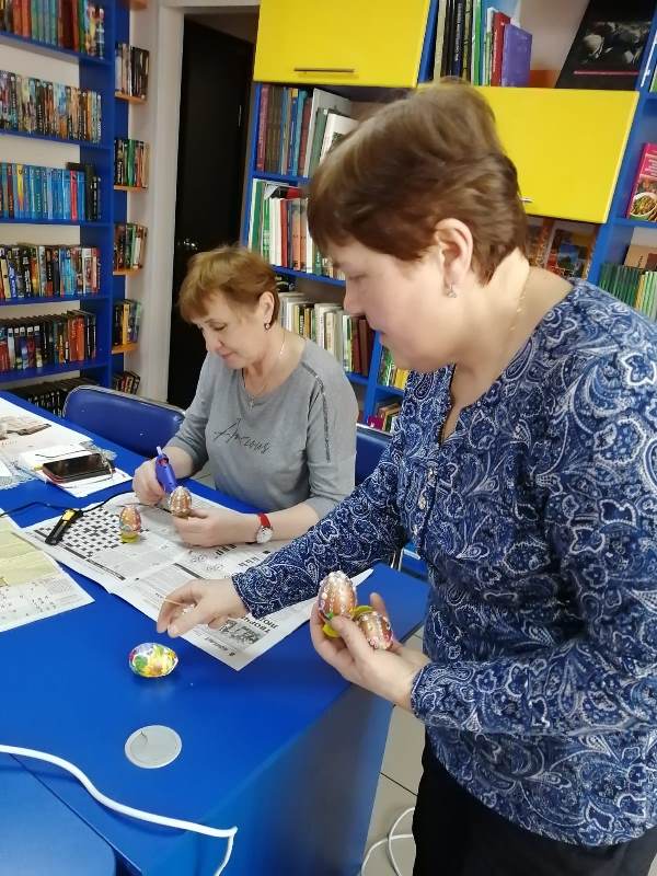 Мастер-класс «Пасхальное яйцо» в рамках кружка «Сами своими руками» состоялся в Библиотечном информационно-досуговом центре поселка Притомский 4 и 11 апреля.