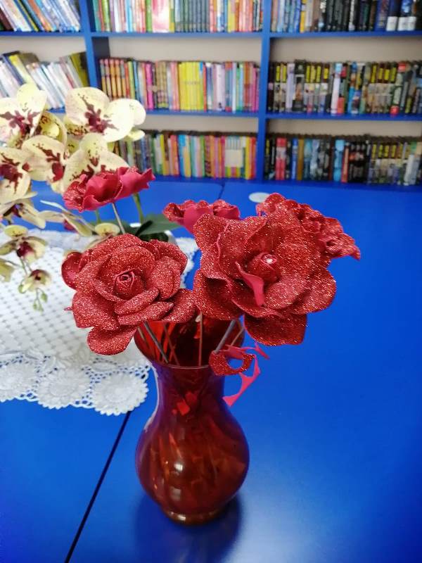 На занятии кружка присутствующие смастерили своими руками розочку из глитерного фоамирана. Для изготовления розочки нам понадобились: глитерный фоамиран, ножницы, заготовки для сбора игрушки, тесьма, горячий пистолет и наша фантазия!
