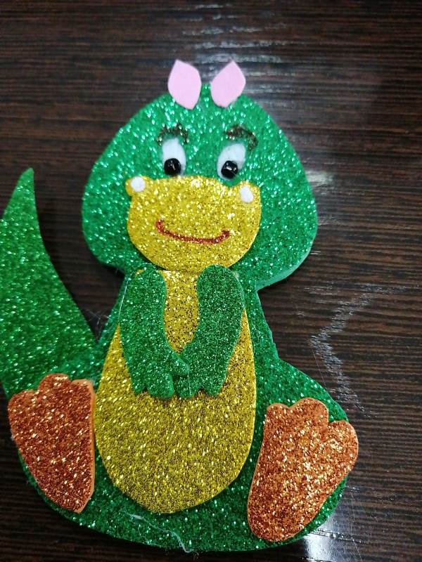 В Крещенский сочельник была изготовлена игрушка магнит из фоамирана, каждый вложил душу и загадал самое заветное желание на новый год. Для изготовления дракончика нам понадобились: глитерный фоамиран, ножницы, заготовки для сбора игрушки, горячий пистолет, магнит и наша фантазия!