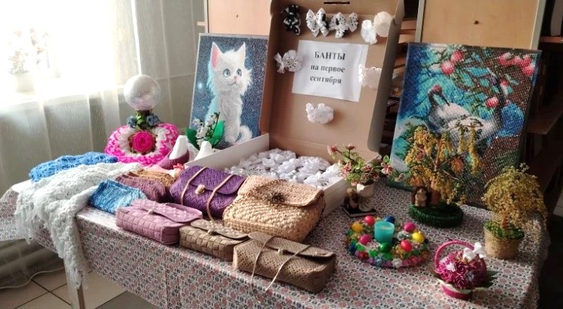 Выставка работ «Женских рук прекрасное творенье» мастериц поселка и участников кружка «Сами своими руками» проходит в библиотеке «Притомская».
