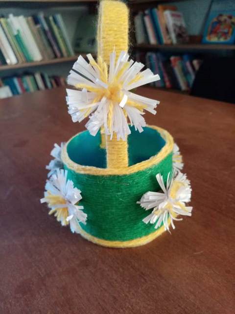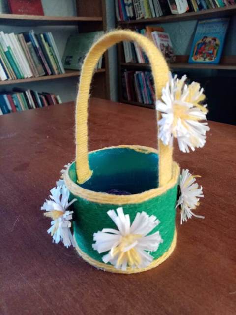 Девочки научились работать с разными материалами, объединяя их в единое изделие. У них получились отличные цветочные корзинки.