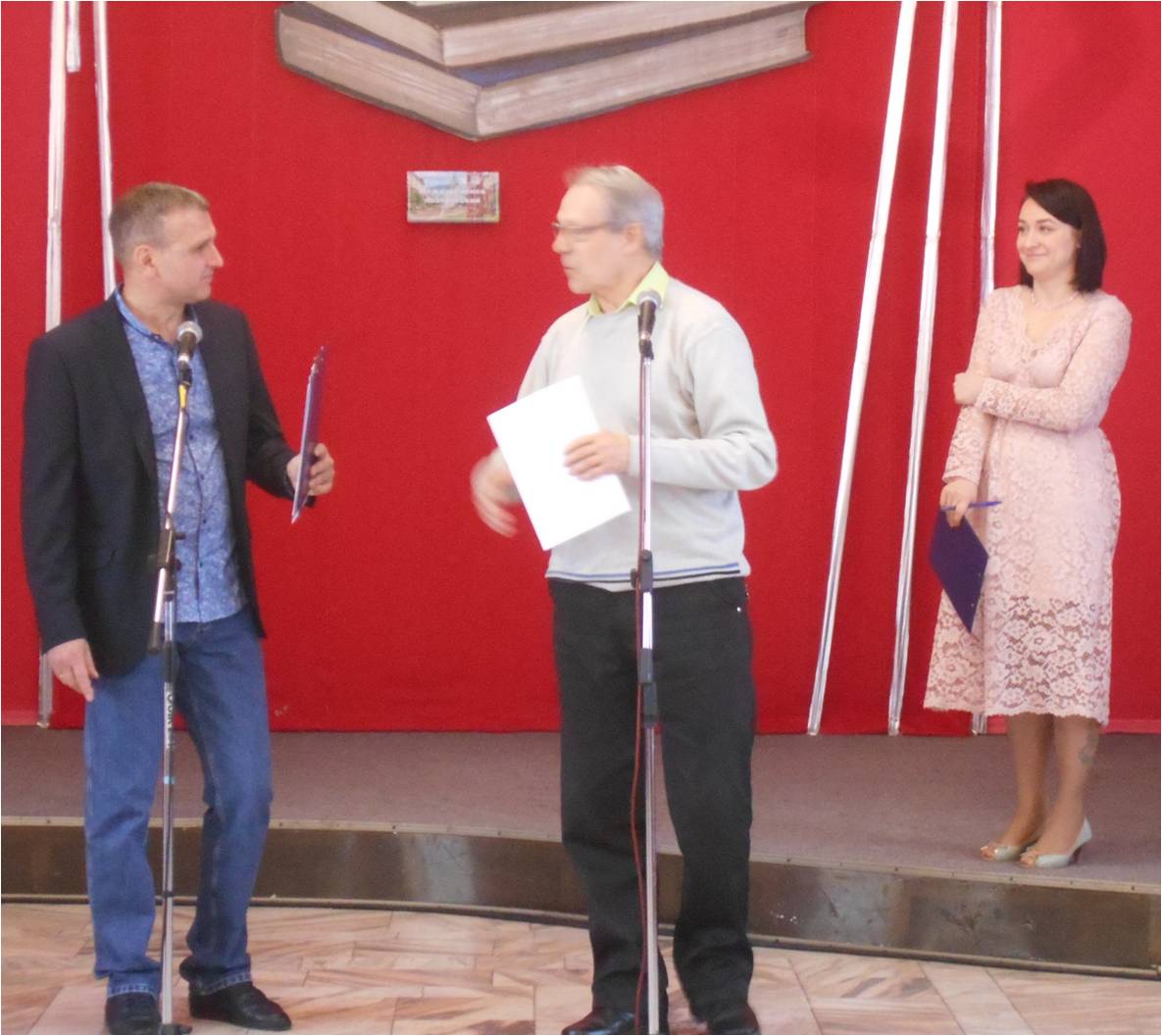 23 марта в ДК им. Ленина прошёл Фестиваль-праздник, посвящённый 20-летию Всемирного дня поэзии. Ведущие Юлия Фиткевич и Евгений Боровков поздравили с Днём поэзии гостей Фестиваля и предоставили вступительное слово начальнику управления культуры Черкашину Евгению Петровичу и директору МБУК МИБС Жуковой Светлане Владимировне.