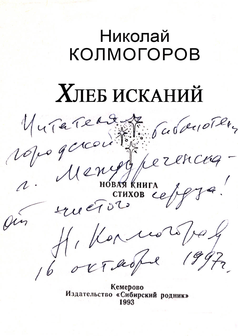 Колмоговов Николай Иванович, кузбасский поэт, член Союза писателей России (краткая биография).