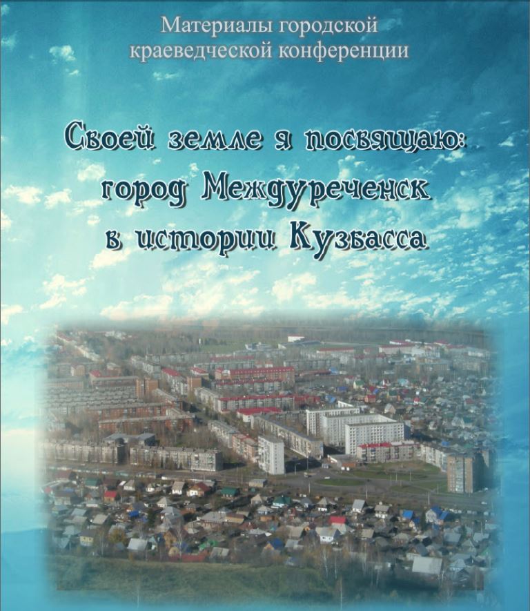 Материалы городской краеведческой конференции "Своей земле я посвящаю: город Междуреченск в истории Кузбасса" (13 декабря 2012 года) / составитель Ирина Александровна Швецова, Татьяна Николаевна Соколова ; редактор Татьяна Яковлевна Кондрашкина . – Междуреченск : МБУК МИБС, 2014 . – 64 с. В декабре 2012 года в Центральной городской библиотеке совместно с Городским краеведческим музеем была проведена городская краеведческая конференция «Моей земле я посвящаю: город Междуреченск в истории Кузбасса», посвящённая 70-летнему юбилею Кемеровской области. В конференции принимали участие сотрудники Городского краеведческого музея, школьных музеев, Заповедника «Кузнецкий Алатау», ДЮЦ и учащиеся МГСТ. В сборнике представлены доклады участников конференции. Материалы городской краеведческой конференции "Своей земле я посвящаю: город Междуреченск в истории Кузбасса" (читать) |