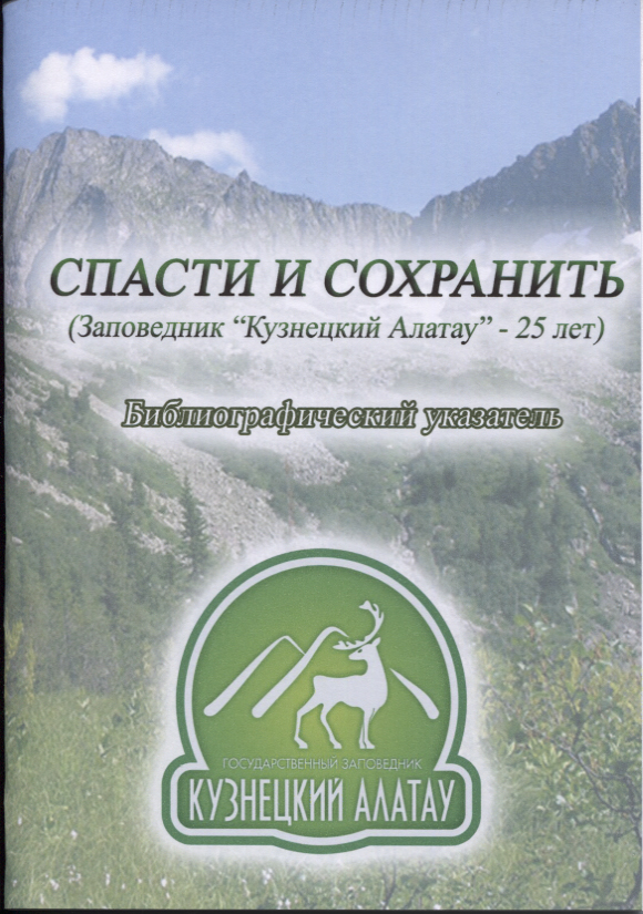 Спасти и сохранить: библиографический указатель. [Текст]: / МКУ «Управление культуры и молодежной политики» г. Междуреченска, МБУК МИБС, ЦГБ, ИБО / Сост. Швецова И. А. – Междуреченск, 2014. – 20с .: ил. – 15 экз. Библиографический указатель посвящен 25-летию государственного природного заповедника «Кузнецкий Алатау». В указатель включены вступительная статья об истории возникновения уникального природного заповедника и библиографический список книг и статей из периодических изданий за период с 1990 по 2014 годы. Спасти и сохранить: библиографический указатель (читать) |