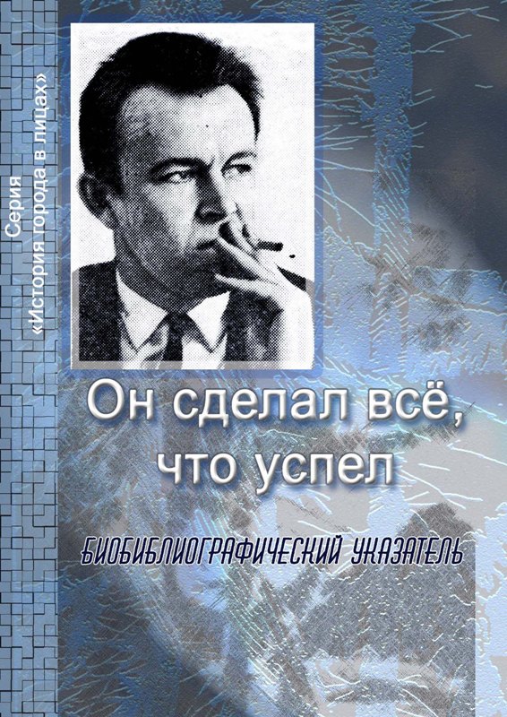 Он сделал все, что успел [Текст]: биобиблиографический указатель / МКУ “Управление культуры и молодежной политики” г. Междуреченска, МИБС, ИБО, сост. Т.Н. Соколова. – Междуреченск, 2012. – 36 с. Третье издание серии "История города в лицах" посвящено писателю Чугунову Виктору Александровичу, члену Союза писателей СССР. О Чугунове В.А. (читать) |