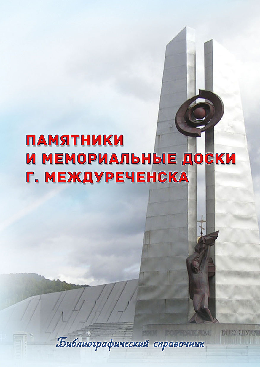 Памятники и мемориальные доски г. Междуреченска [Текст]: библиографический справочник: [6+] / сост.: Швецова И. А.; Муниципальное бюджетное учреждение культуры «Междуреченская информационная библиотечная система». – Изд.4-е, перераб. и доп. – Междуреченск: сектор краеведения, 2018. – 152 с. – 10 экз. Междуреченск – один из самых молодых угольных городов Кузбасса, построенный руками комсомольцев пятидесятых – шестидесятых годов. Несмотря на молодость, город имеет свою историю. Новая дополненная редакция издания посвящена памятным местам города Междуреченска, их авторам и создателям. Памятники и мемориальные доски г. Междуреченска (читать) |
