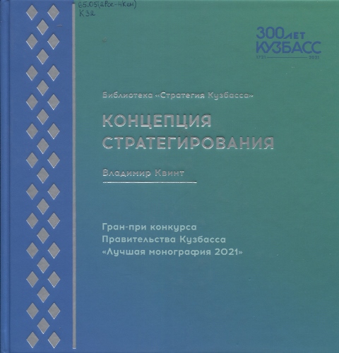 1Квинт, Владимир Львович. Концепция стратегирования : монография / Владимир Львович Квинт . – 2-е издание . – Кемерово : Кемеровский государственный университет, 2022 . – 172 с. : ил.; в переплете ; 23 см . – (Библиотека «Стратегия Кузбасса») . - 500 экз. – 16+ .
