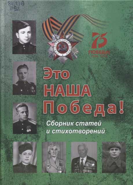1Это наша Победа! : сборник статей и стихотворений живых свидетелей Победы в Великой Отечественной войне 1941-1945 годов, участников Литературных объединений Кемеровской области – Кузбасса и ветеранов войны и труда Кузбасса и города Кемерово / ответственный редактор Надежда Яковлевна Кудрявцева-Кузнецова . – Кемерово : Технопринт, 2020 . – 208 с. : 6 л. фотоил.; в переплете ; 22 см . – 16+ .