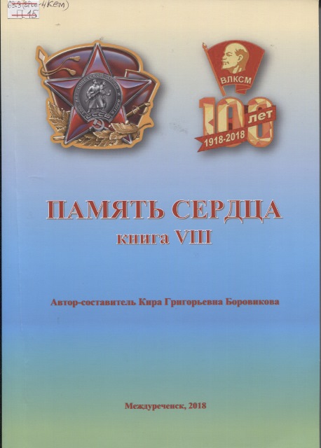 1Память сердца [Кн. 8] / составитель Кира Григорьевна Боровикова . – Междуреченск : без издательства-Междуреченск, 2018 . – 212 с. : цв. ил.; в обложке ; 30 см . – 150 экз.