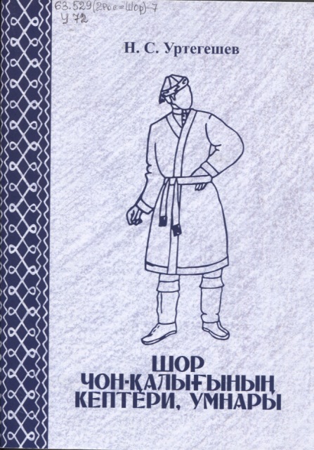 1Уртегешев, Н. С. Шорский национальный костюм, орнамент / Н. С. Уртегешев . – Абакан : Новосибирский региональный Общественный Фонд сохранения культуры хакасов «Ал Хоорай», 2020 . – 68 с. : цв. ил.; в обложке ; 25 см . – 200 экз.